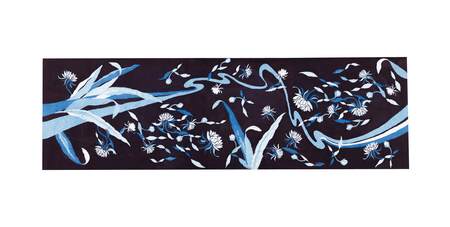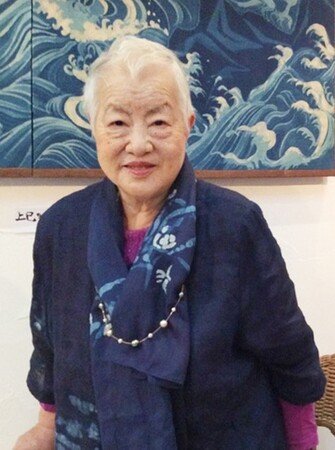 【橋本陽子】藍染作家。1931年徳島市生まれ。30代で阿波藍の世界に入り、自由な表現を可能にする藍のろうけつ染を確立。1971年より本格的に作家活動を開始し、数十回にわたる個展開催を通じて阿波藍の芸術的可能性を切り拓く。フランスの公募展「ル・サロン」および「サロン・ドートンヌ」に入選し、パリで作品を発表。