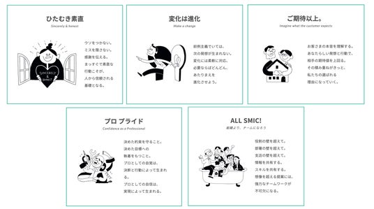 当社では「発想を提供する建築商社へ」というビジョンのもと、「ひたむき素直」「変化は進化」「ご期待以上」「プロプライド」「ALL SMIC!」という5つのバリューを策定しています。すべてはお客様の見えない想いに応え、そして超えていくということを大切にしたものであり、当社が持つ最大の強みでもあります。現在当社は創業120年、創立から数えると60年を迎えています。社員数も過去最大規模に成長しており、社内の働き方満足度向上や文化醸成を非常に大切に考えています。そんな思いから今回のプロジェクトでは、普段なかなか伝えられていなかった感謝の気持ちを改めて言葉にして伝えあうことで、より社員一丸となってサービス向上に繋げようと企画しました。