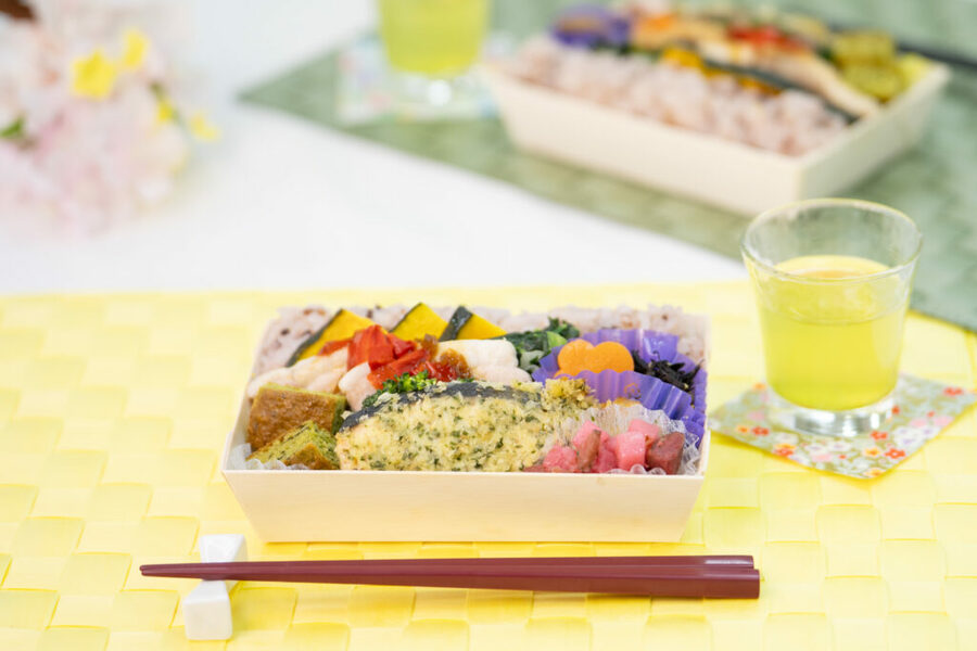管理栄養学科栄養教育学研究室では、産学連携(味の素株式会社・株式会社銀しゃり)による「おいしい減塩プロジェクト」の一環として、自然と食塩摂取を控えることができる食環境づくりの実践に取り組んでいます。その一環として開発した弁当「こだわり素材の『おいしい宝箱』」は、食塩相当量2.3gでありながらスマートミール