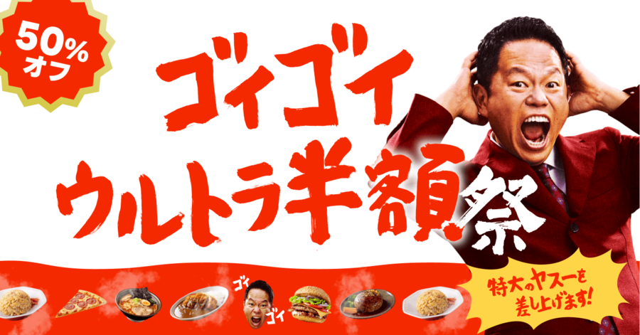キャンペーン期間中を通して合計7,000店舗以上の参加加盟店の対象商品が通常価格の50%オフでご注文いただけます。