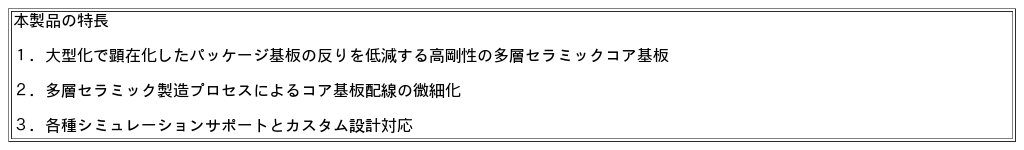 1.大型化で顕在化したパッケージ基板の反りを低減する高剛性の多層セラミックコア基板