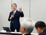 検証委員会の会合で発言する日本国際博覧会協会の十倉雅和会長(右)=27日午後、東京都千代田区