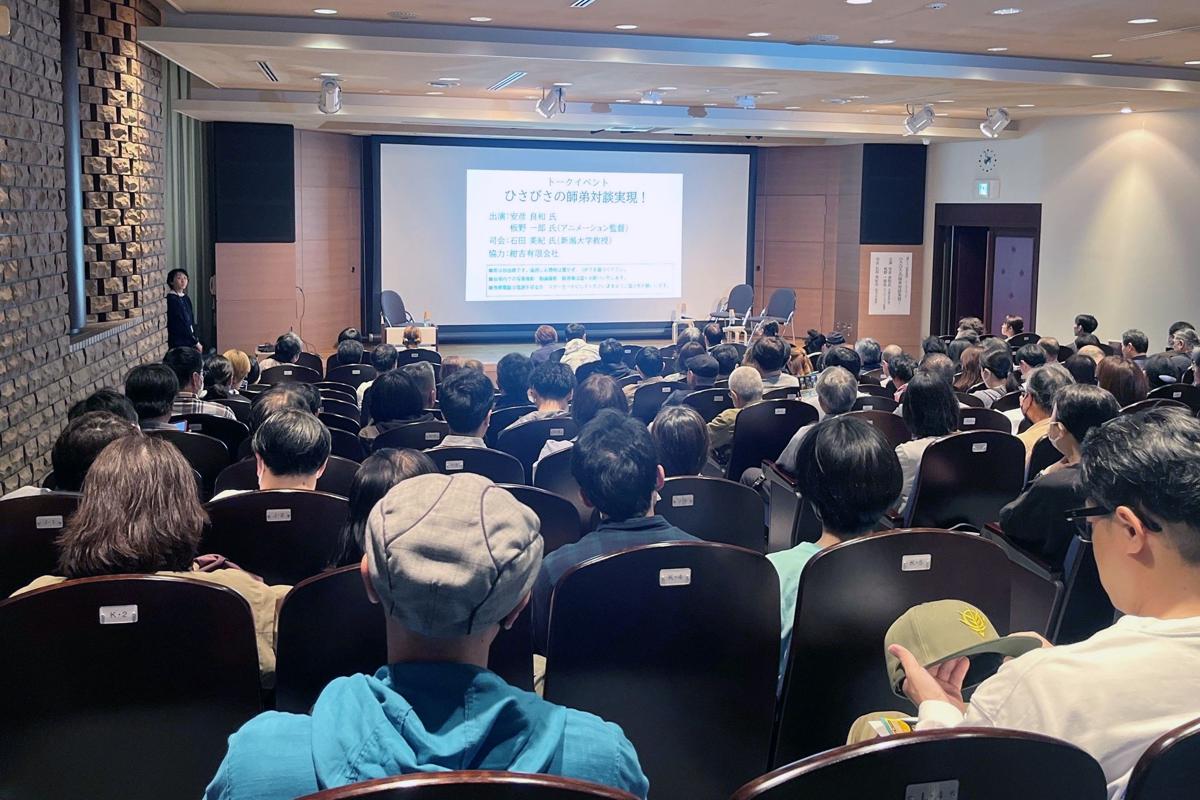 司会を務めたのは、官民でつくる「新潟アニメ推進協議会」の座長で安彦さんの作品の大ファンだという新潟大の石田美紀教授。初代ガンダムの原画を集めた特別映像を上映した後、ガンダムに関する造詣が深い石田教授が「あのシーンやこのシーン」について尋ねる形で、トークが進んでいきました。