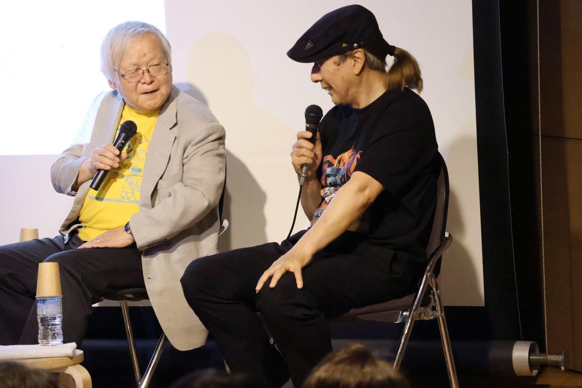 師弟対談する安彦良和さん(左)と板野一郎さん=長岡市