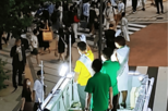 首相官邸前で街頭活動する大沢昭一さん(中央)。特定失踪者家族会が求める首相との面会は実現していない=5月