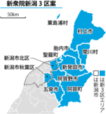 西村氏は衆院選で、県庁所在地である新潟市中央区を含む選挙区で戦い続けてきたため、この関係者は「新1区からの出馬が自然ではないか」と話す。ただ新2区へ移る可能性も否定できず「どちらも一長一短ある」と戸惑いを隠さない。