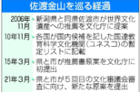 「佐渡島(さど)の金山」について政府が2023年の世界文化遺産登録を断念する事態になったことを受け、末松信介文部科学相は1日、新潟県庁で花角英世知事と面会した。末松氏は国連教育科学文化機関(ユネスコ)から推薦書の不備を指摘され、断念した経緯を説明。面会後、地元との情報共有がなかったことについて「相手側(ユネスコ)の扉を閉めないためにやむなしの対応だった」と釈明した。県に対して謝罪したか報道陣から問われたが、明確に答えなかった。