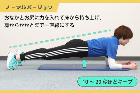 [にいがた元気エクササイズ]肘を床について、体を「一直線」に伸ばし…ゆがんだ骨盤を元に戻そう♪ 膝痛、腰痛防止編・プランク