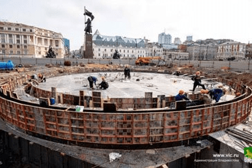 ウラジオストク市中心部にある中央広場で、近代的な噴水の建設が進んでいる。来年には広場の総合的な改修が予定されており、調和の取れた景...