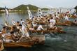 早船競漕、一斉に水しぶき 和歌山・新宮で御船祭
