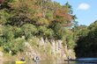 色づく紅葉、川面から見上げ…切り立つ崖に滝や洞窟を堪能♪魚沼市・破間川渓谷でカヌー体験実施中