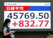 東証続伸、終値は832円高 4万5769円、史上最高値更新