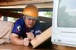 倒壊家屋から脱出体験 再現装置で親子連れら