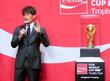 W杯トロフィーが都内でお披露目 宮本会長「輝きすごい」