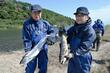 今季初漁に婚姻色のサケ 福島県楢葉町、木戸川