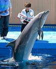 佐藤駿選手、イルカと共演 仙台の水族館で一日館長