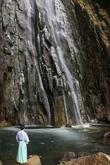 那智の滝、滝つぼ凍る 和歌山、寒波で岩肌白く雪化粧