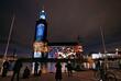 原爆ドームと折り鶴を投影 ストックホルム市庁舎