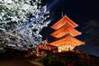 夜桜が彩る京都・清水寺の舞台 ライトアップ、まだつぼみ