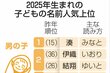 2025年子どもの名前ランキング、男子「湊」女子は「翠」が1位!いずれも初の首位 明治安田生命調査