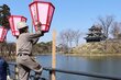 上越市・高田城址公園、観桜会に向けぼんぼり設置進む 4月3日開幕、「ライトアップと合わせて桜楽しんで」