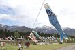 雪解けの巻機山を背に…こいのぼりが登川をゆったり“遊泳”♪ 新潟南魚沼市・滝谷農村公園の空に彩り、5月6日まで