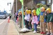 ドライバーさん「ゆっくり走ってね」♪園児が安全運転呼びかけ、長岡市与板の商店街