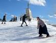 日本のスキーの原点、上越で「一本杖スキー」披露! レジェンド原田雅彦さんも参加、オリンピックでの日本勢躍進誓う