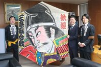 「三条の凧(いか)PRに生かして!」新潟県三条市の三条凧協会、市長室に飾るための六角巻凧を寄贈