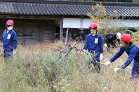 新潟県三条市の「宝物」僕たちの手できれいに 地元の月岡小児童が文化財の川俣家住宅長屋門周辺を草刈り