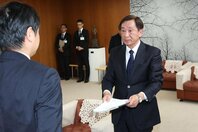乱戦の上越市長選制した小菅淳一さん、中川市長から事務引き継ぎ「身の引き締まる思い」