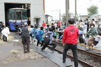 綱引きエイヤ、車両が動いた! 上越・直江津で鉄道まつり、親子連れらが40トンの車両と力比べ