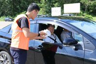 交通事故防止願いコメ! 上越署や市内の専門学校生ら「早めのライト点灯」呼びかけ、パック米配り街頭活動
