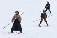 日本スキー発祥の地で「レルヒ祭」、新潟県上越市 少雪でも創意と工夫で盛り上げ♪一本杖スキーも披露