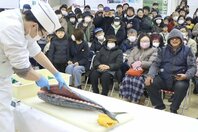 寒ぶりまつり大盛況!みんなで「縁起物」堪能!  新潟県上越市の直江津港、 解体ショーや刺し身販売