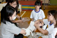 もしもの対処法、親子で学ぶ 新潟県上越市の上越教育大付属小で防災教室・心肺蘇生法にも挑戦