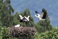 新潟上越市のコウノトリ全4羽が巣立ち!野生下で1971年に絶滅後、県内で初めて5月にふ化 9月まで巣の周りで行動か