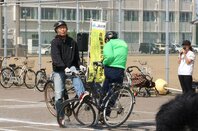 自転車の2人乗りや傘差し運転、スマホ見ながら運転やめて! 新潟上越市・直江津東中で交通安全教室、スタントマンが事故再現
