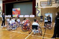 車いすバスケ体験!挑戦する大切さ学ぶ 新潟上越市の浦川原小で出前授業、パラスポーツ通じ共生社会への理解深める