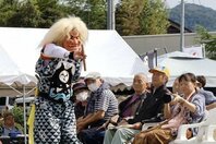鬼がステージ飛び出した! 佐渡市新穂地区で「朱鷺夕映え市」、鬼太鼓や踊りの迫力を堪能