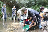 「あ!金があったよ!」 新潟県佐渡市で最古の金山「西三川砂金山」で親子連れらが砂金採り体験