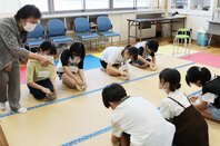 「やわらぎ」って知ってる?一緒にやってみよう! 新潟佐渡市相川小の児童、地元の神事芸能で妙高市斐太北小児童と交流深める