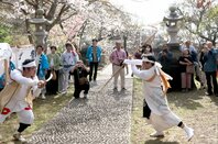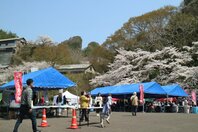 金山と桜の下、島の味覚を堪能♪笑顔も満開 新潟佐渡市相川で「さど食の陣」、家族連れでにぎわう