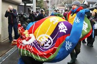 伝統の「飴獅子」練り歩き、妻入りの町並み色鮮やかに 新潟県出雲崎町「元気いっぱいの1年に」
