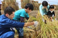 日本海を背に喜びの収穫 新潟県出雲崎町の棚田で稲刈り体験、町が募集の田んぼオーナーが参加