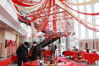 天井見上げれば…つるし雛が春らんまん♪「草履」に「抱き猿」、繭玉も 新潟柏崎市、出雲崎町で個性豊かな飾りがお出迎え