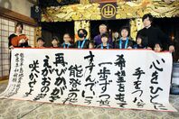 能登の地に再び「えがおの花」を 新潟燕市・国上寺で子どもたちが揮毫イベント、全国各会場と心一つに