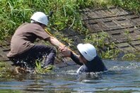 ため池は落ちたら上がれない!新潟十日町市で小学生向け講習会 長岡技術科学大学の学生が危険性を実演、転落時の対処法伝える