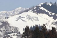 巨大文字、白銀のゲレンデに現る! 新潟県南魚沼市の八海山麓スキー場に「大和」、若手経営者らが地元を猛アピール