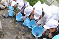 魚野川の魚が減ったのはなぜ?きれいな自然守ろう! 新潟南魚沼市の石打小学校児童がイワナの稚魚放流、大きくな~れ♪